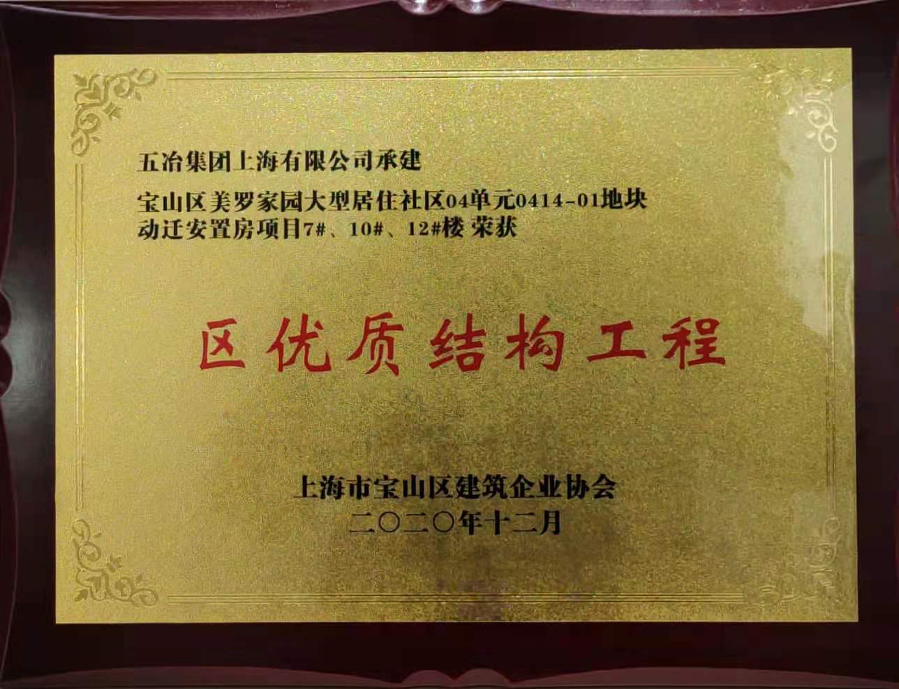 寶山區(qū)美羅家園大型居住社區(qū)04單元0414-01地塊動(dòng)遷安置房項(xiàng)目7#、10#、12#樓—2020年上海市寶山區(qū)優(yōu)質(zhì)結(jié)構(gòu)工程