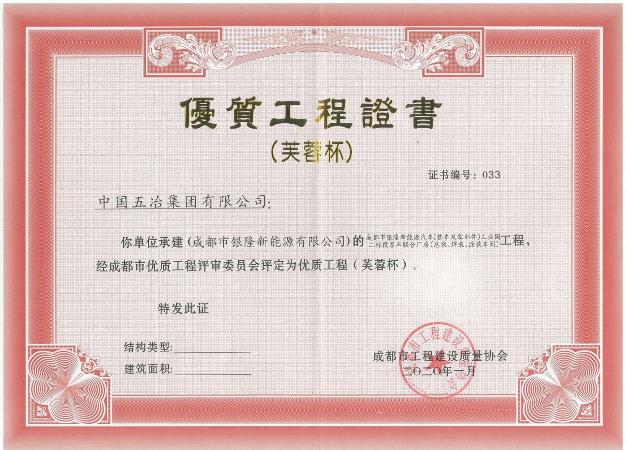 成都市銀隆新能源汽車(整車及零部件)工業(yè)園二標段客車聯(lián)合廠房(總裝、焊裝、涂裝車間)項目-2019年度芙蓉杯