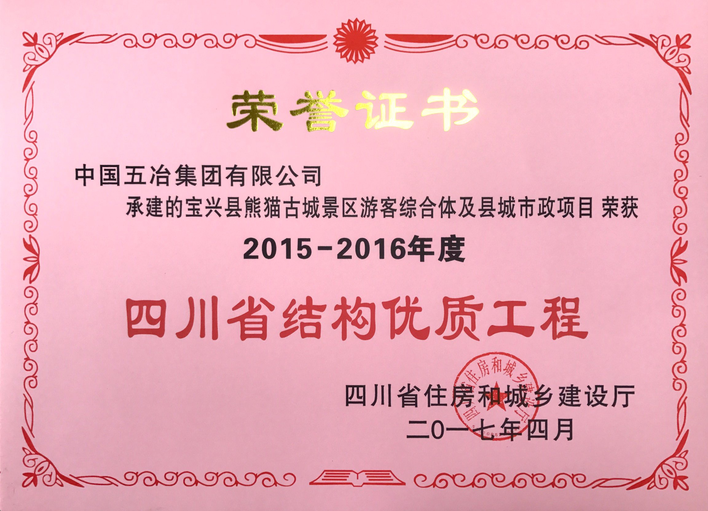 寶興縣熊貓古城景區游客綜合體及縣城市政項目-2015-2016年度四川省結構優質工程