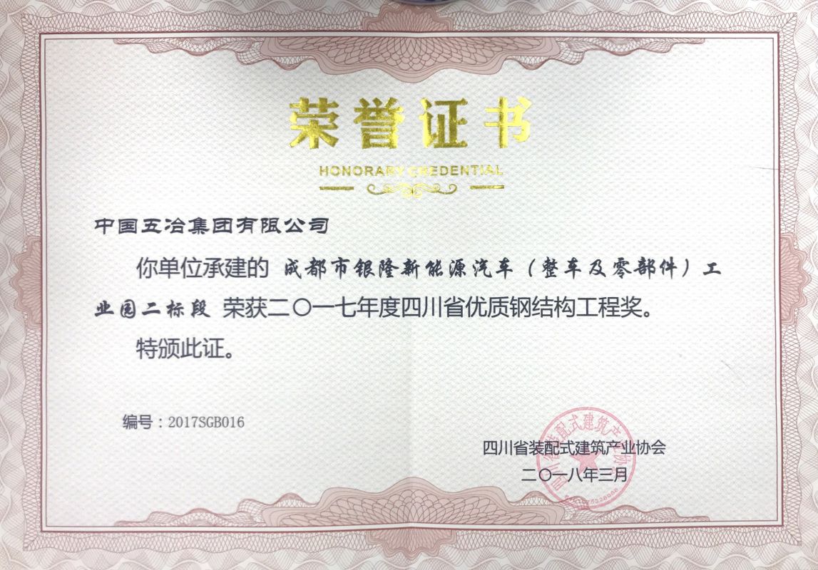成都市銀隆新能源汽車(整車及零部件)工業園二標段-2017年度蜀鋼杯