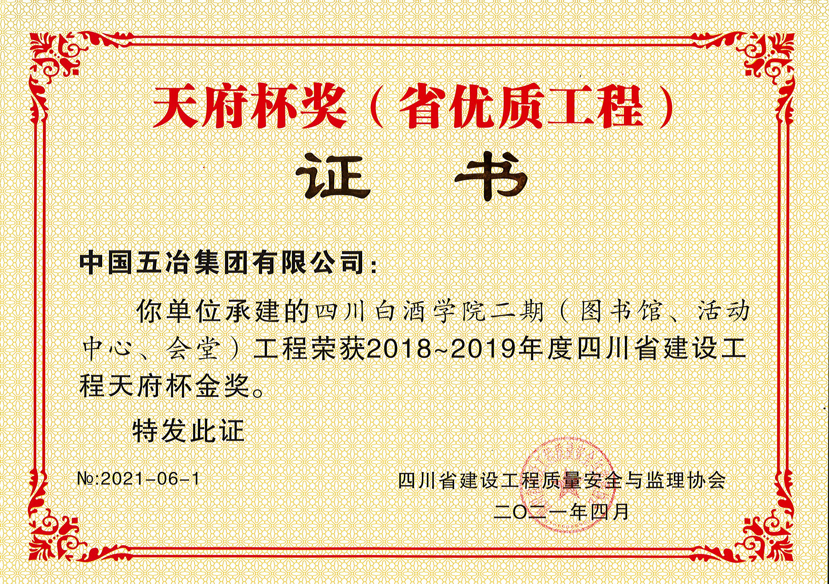 四川白酒學院二期(圖書館、活動中心、會堂)工程—2018-2019年度四川省建設工程天府杯金獎