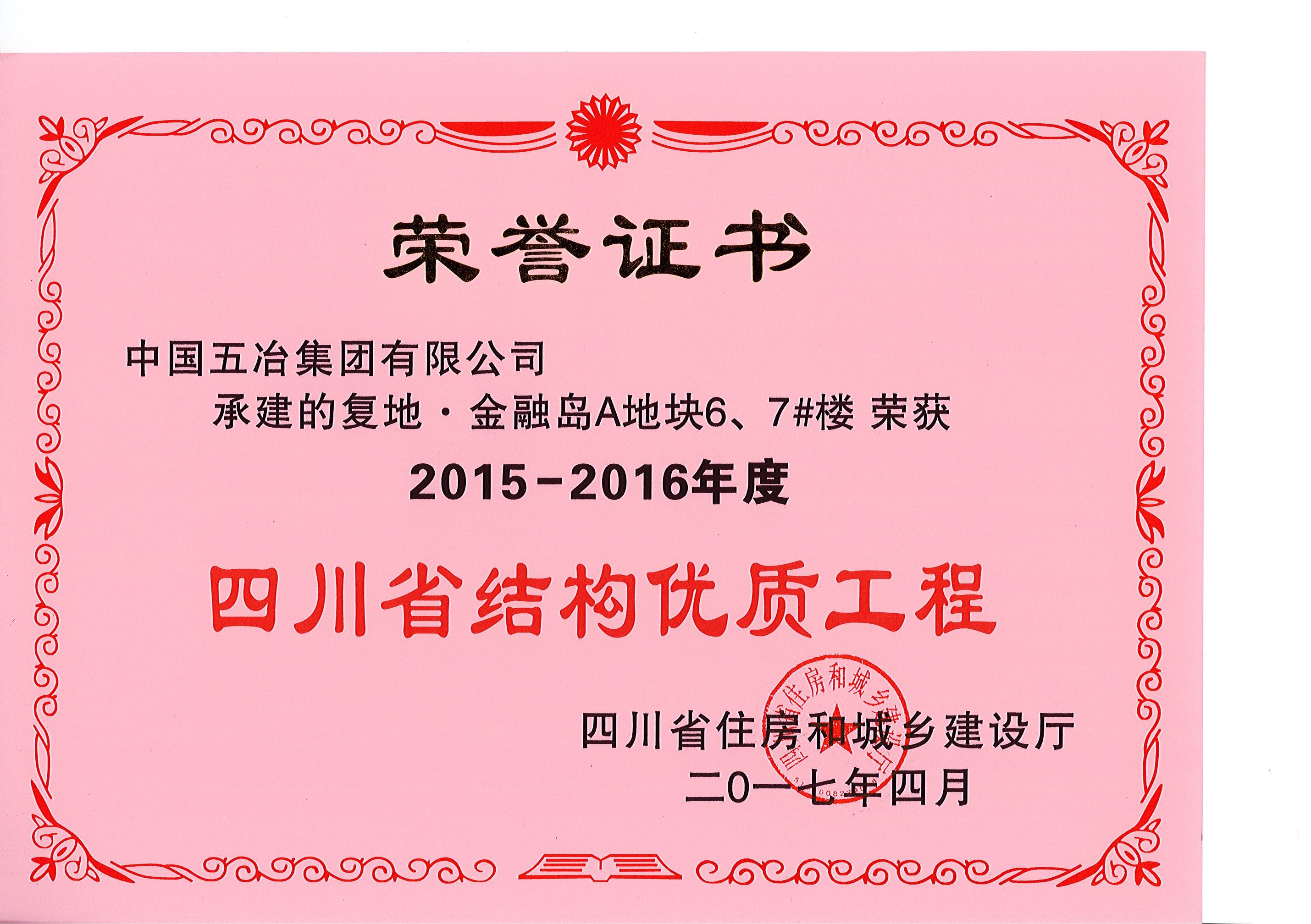 復(fù)地金融島A地塊6、7#住宅樓—2015-2016年度四川省結(jié)構(gòu)優(yōu)質(zhì)工程