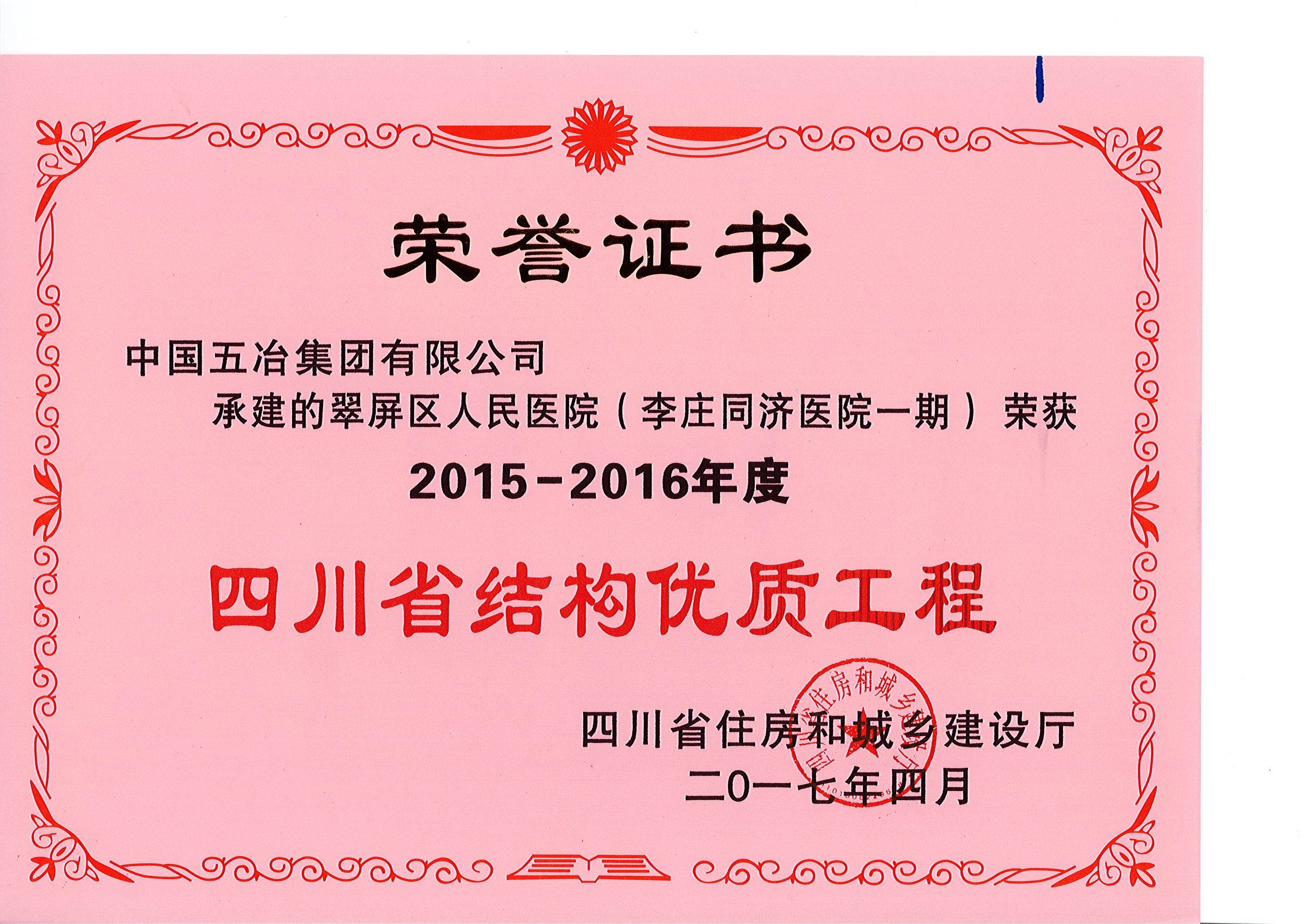 翠屏區(qū)人民醫(yī)院(李莊同濟醫(yī)院項目一期)—2015-2016年度四川省結(jié)構(gòu)優(yōu)質(zhì)工程