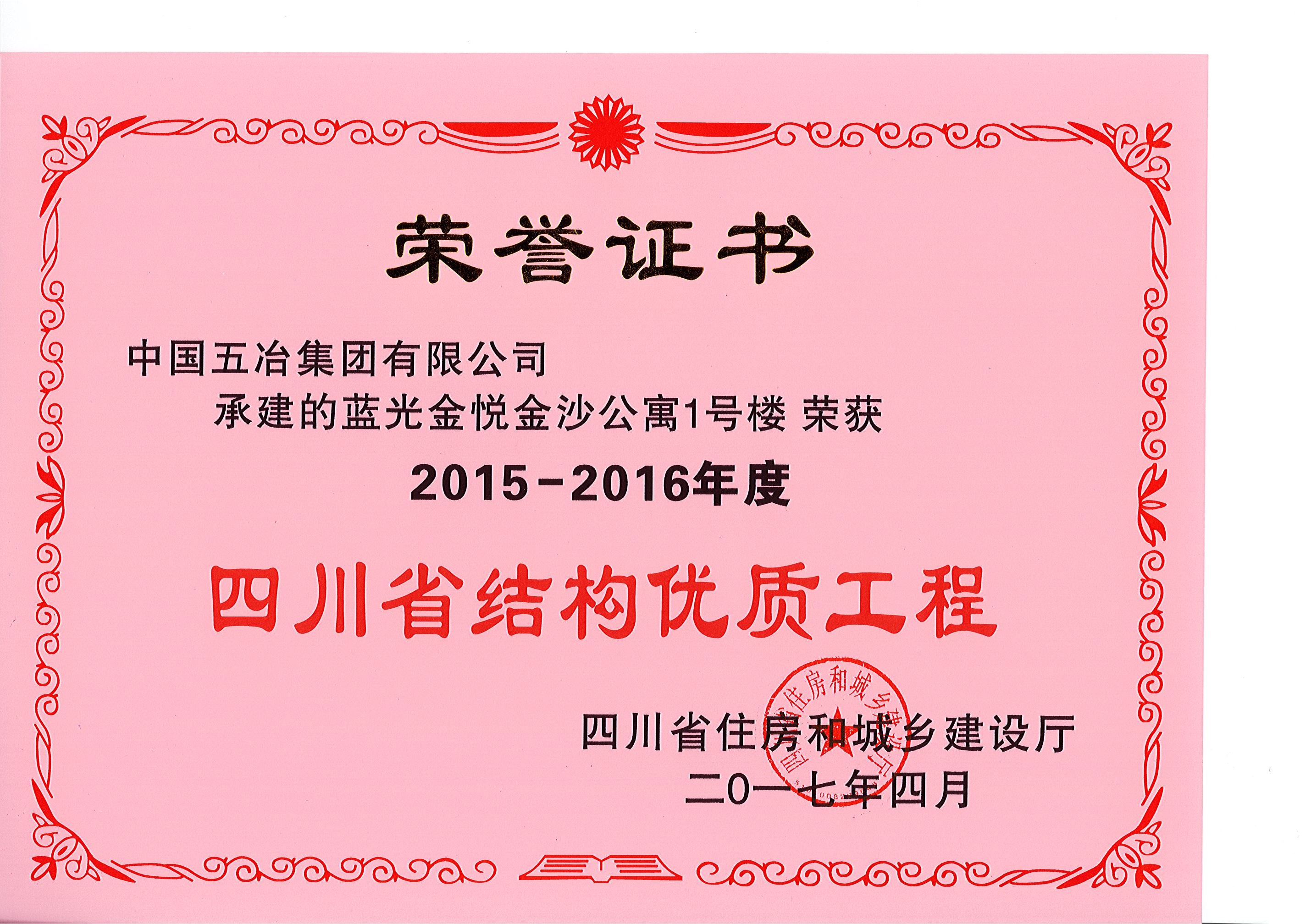 藍光金悅金沙公寓1#樓—2015-2016年度四川省結(jié)構(gòu)優(yōu)質(zhì)工程