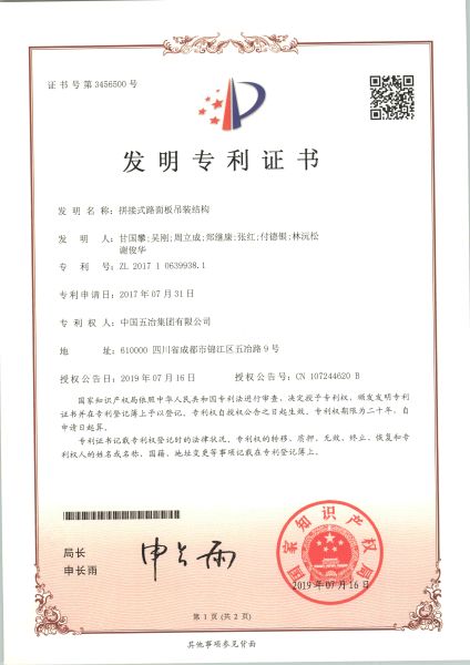 拼接式路面板吊裝結構 ZL2017106399381