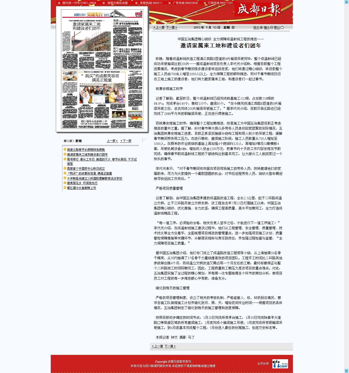 成都日?qǐng)?bào)報(bào)道:中國五冶集團(tuán)精心組織 全力保障成溫射線工程的推進(jìn)——邀請(qǐng)家屬...
