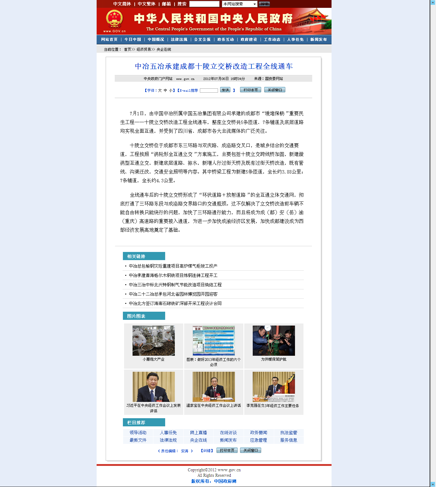 下一篇:中央人民政府網(wǎng)報(bào)道:中冶簽訂成都元華路南延線市政道路工程合同