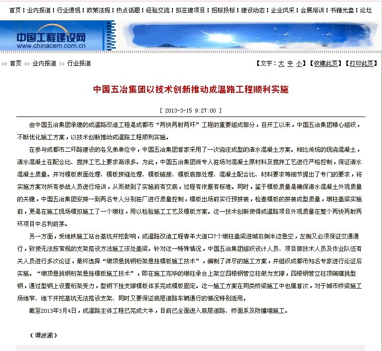 上一篇:中國冶金建設(shè)協(xié)會(huì)網(wǎng)報(bào)道:中國五冶集團(tuán)在成溫路項(xiàng)目首創(chuàng)的“鋼桁架無支架懸掛...