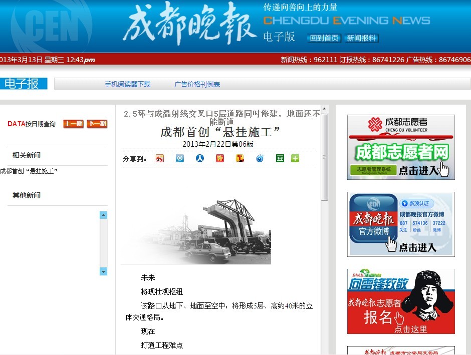 據(jù)介紹,今年5月30日,成溫射線高架將順利通車;地鐵4號線也將于2015年完工,7號線則將于2016年完工。