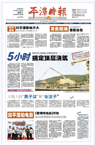 《平潭時報》頭版報道中國五冶集團海峽大橋二線通道入區服務樓封頂