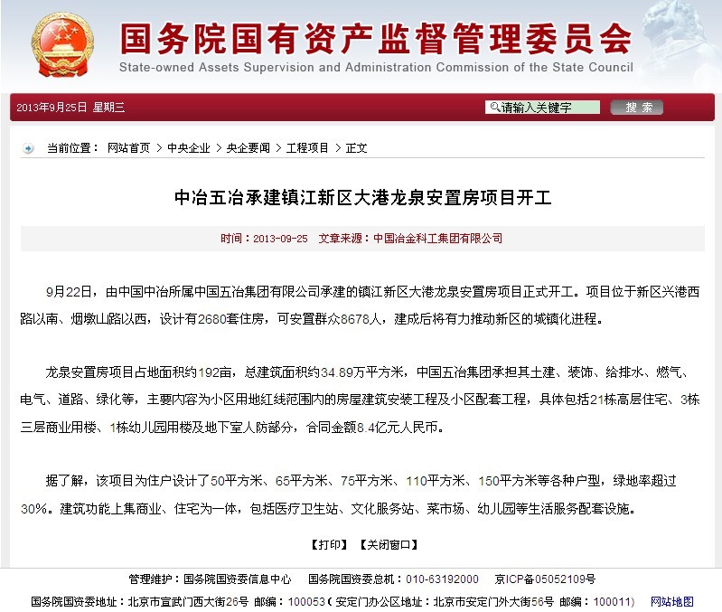 國資委報道:中國五冶集團承建鎮江新區大港龍泉安置房項目開工