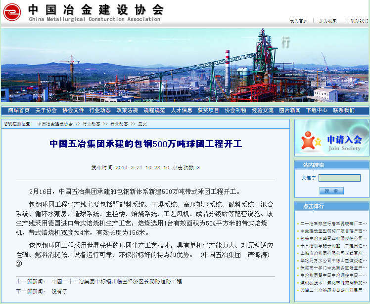 中國冶金建設協會報道:中國五冶集團承建的包鋼500萬噸球團工程開工