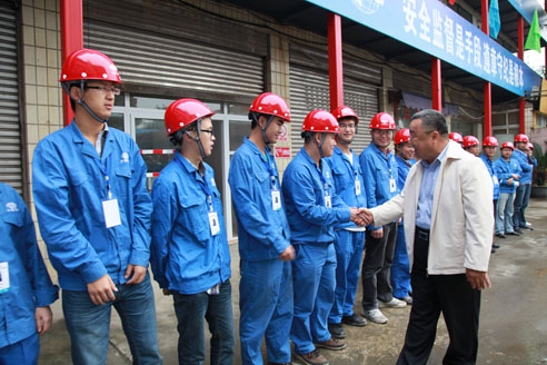 每到一處,集團公司領導與員工們親切握手,問好致謝。路橋公司領導袁弘毅、劉鐵堅和項目部經理郁祖平分別向集團公司領導匯報了項目的基本概況、施工難點、吊裝方案、重大節點及完成時間。交流過程中,公司董事長、黨委書記程并強對項目的文明施工和工程進度表示滿意。對成溫路改造工程的后期建設提出了更高要求。他說:成都市緩堵保暢“兩快兩射兩環”成溫路段項目是公司當前的一號工程,是四川省、成都市政府極其關注的重要民生工程,社會影響巨大,對公司拓展市政工程市場具有重要的現實意義,參建單位一定要克服困難,精心組織,注意安全,確保履約。向成都市民獻上一份優質的答卷。