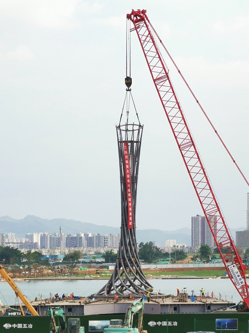 7月3日,由中國五冶集團承建的東安湖火炬塔項目塔身鋼結構已全部吊裝完成,“大運之光”初具雛形,下一步將移交后期的裝飾裝修環節。