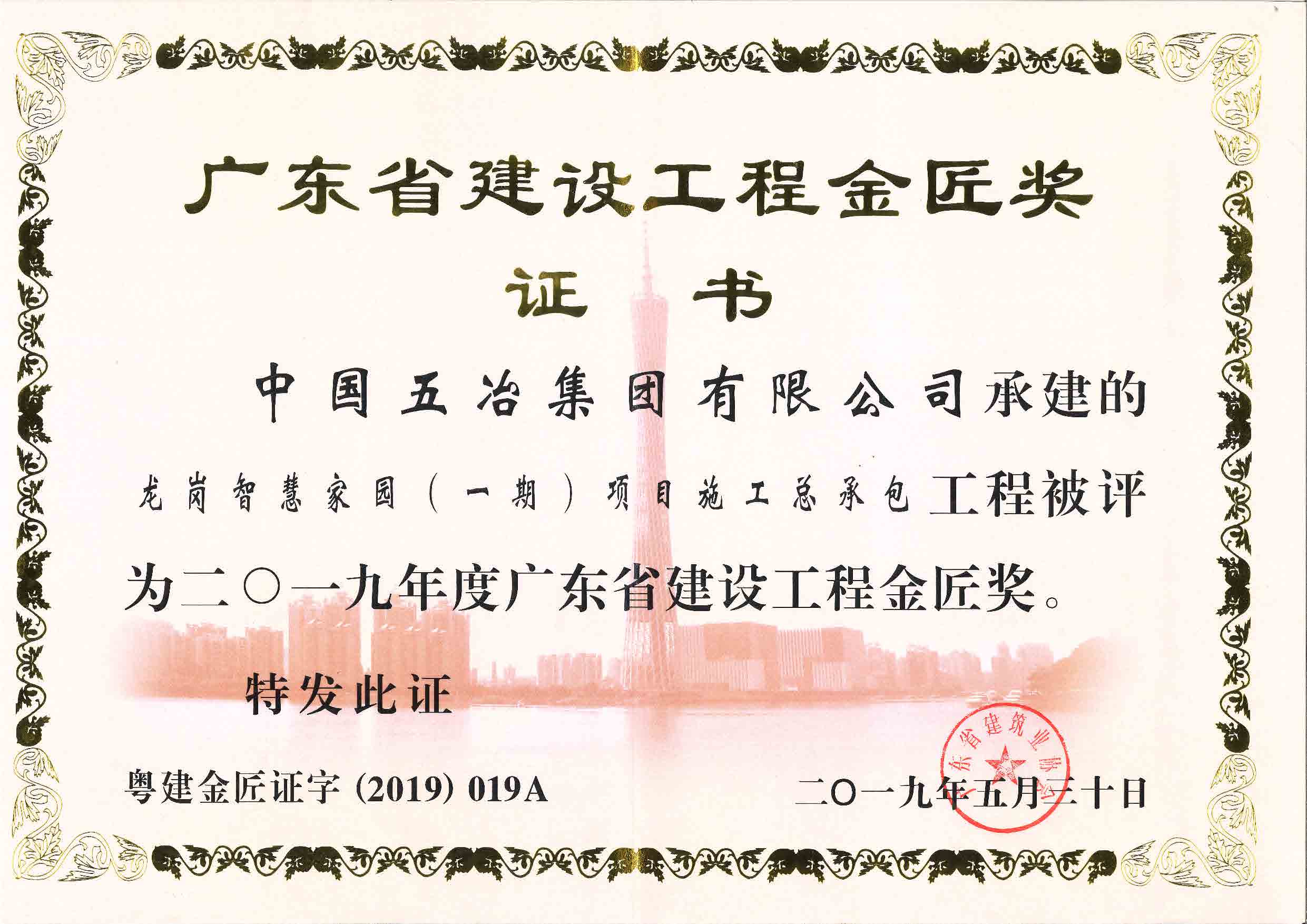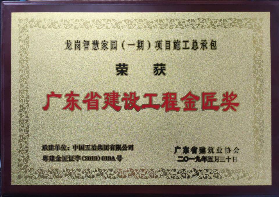 龍崗智慧家園(一期)項(xiàng)目施工總承包工程被評(píng)定為二〇一九年度廣東省建設(shè)工程金匠獎(jiǎng)