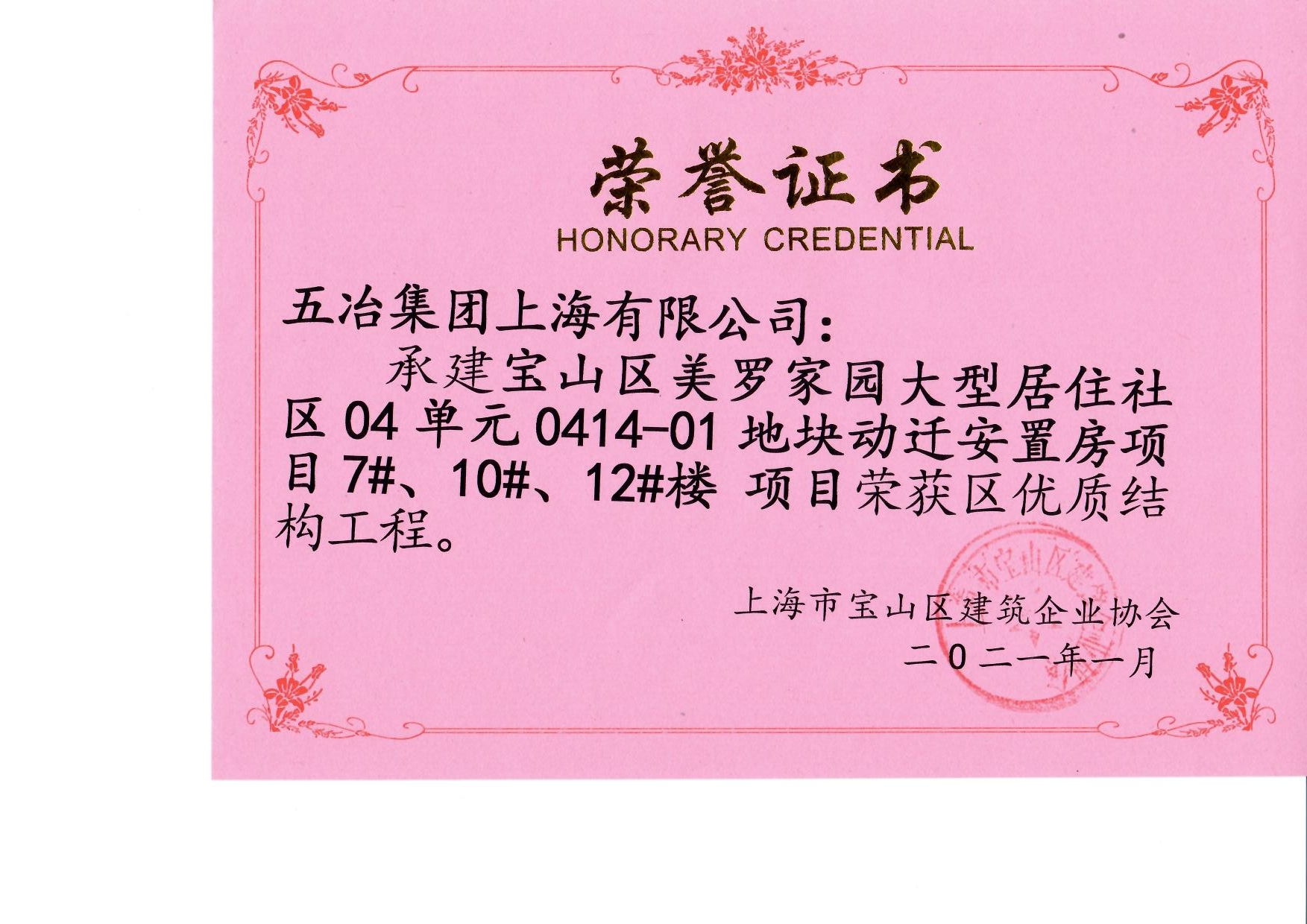 寶山區(qū)美羅家園大型居住社區(qū)04單元0414-01地塊動遷安置房項目7#、10#、12#樓—2020年上海市寶山區(qū)優(yōu)質(zhì)結(jié)構(gòu)工程