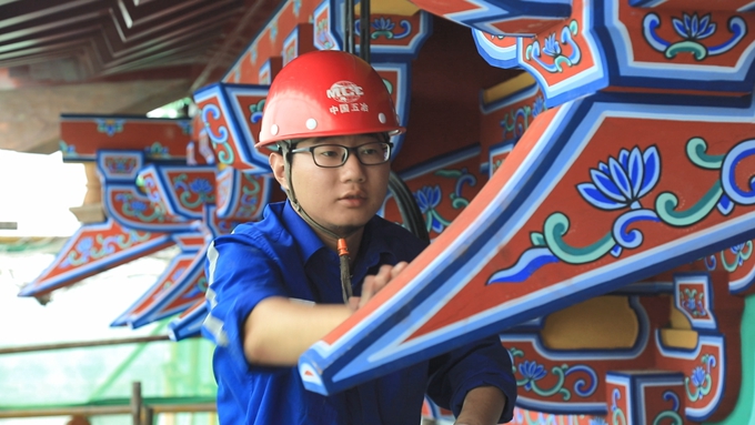 中國五冶集團清暉閣及沿江景觀提升工程項目負責人劉云亮介紹,為了讓清暉閣完美再現唐宋古風,中國五冶集團充分發揮全產業鏈頂級服務的優勢,從設計、工藝、管理等多方面為項目保駕護航。從設計上,清暉閣充分應用BIM技術,結合古建設計,成立了專業仿古建筑深化設計團隊,為項目整個仿古體系進行了完善和優化設計,深化了仿古建筑節點及輔助材料下單及加工安裝,確保項目按照規劃和設計方案完美呈現;在工藝上,從建筑形制、細節把控,到材料選擇都精益求精,通過對仿宋建筑的相關文獻(《營造法式》《斗拱》《彩繪研究》)等學習和研究,全力吸收和消化相關仿宋制式知識,結合現代建筑項目特色,從建筑、結構、功能等方面上嚴格把控每一道工藝、工序質量和安全。在管理上,成立了分木作(斗拱、額、梁、枋、門窗等)負責人、油漆和彩繪負責人、石作負責人等工藝負責人,從設計、材料、打樣、施工等各個環節進行全方位專人負責和把控,確保本項目施工質量和效果。同時,項目還在南充當地政府、建設單位的指導和支持下,整合成立了強大的仿古建筑專家團隊。“為了把項目做成精品,我們在南充市順慶區政府、區城鄉建設局等政府部門的幫助下,深入組織項目團隊和專家到滕王閣、岳陽樓、黃鶴樓等知名古建筑考察學習,汲取了大量豐富、寶貴的古建制式相關知識。”劉云亮說。