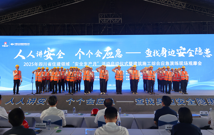 6月6日,2025年四川省住建領域“安全生產月”活動啟動儀式暨建筑施工綜合應急演練現場觀摩會在中國五冶集團成都每經中心項目舉辦,該活動也標志著集團公司2025年“安全生產月”活動同步啟動。四川省住建廳黨組書記、廳長、廳安委會主任鄧立軍出席并講話,省應急管理廳副廳長張勁、省消防救援總隊副總隊長鄒興連到會交流指導,集團公司黨委副書記、總經理、安委會常務副主任張剛致辭。省住建廳總工程師熊風主持會議。