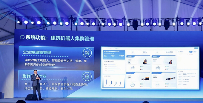 現(xiàn)場觀摩環(huán)節(jié),與會嘉賓觀近距離觀看了機(jī)器人集群智能調(diào)度管理系統(tǒng)和4款智能建造機(jī)器人在模擬施工環(huán)境中高效配合、聯(lián)動作業(yè)的實景演示,感受智能建造科技在提高施工效率、保障人員安全、提升建筑品質(zhì)、降低建設(shè)成本等方面的優(yōu)異表現(xiàn)。