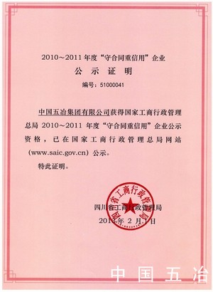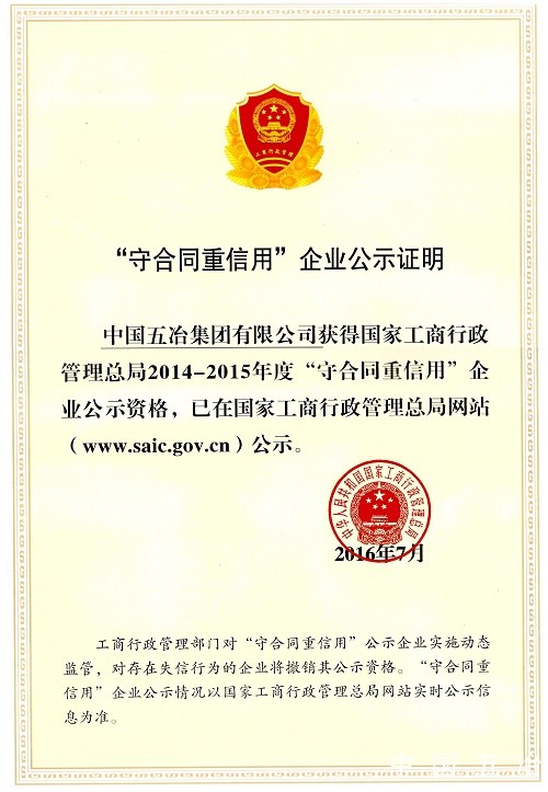 首頁 企業榮譽綜合獎全國重合同守信用獎