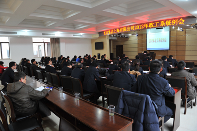 3月6日,中國五冶集團上海有限公司2012年政工系統在科技樓召開例會。系統主管領導、公司黨群工作部、紀檢監察部、辦公室、人力資源部、綜合事務部部門負責人及各二級公司黨委(總支)書記、副書記、工會主席、紀委書記、黨群、人力、團委等相關人員70余人參加了會議。會議由該公司黨委副書記、紀委書記、工會主席薛志群主持。